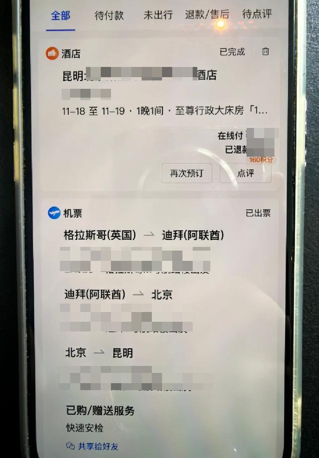 英国留学生小美的机酒信息