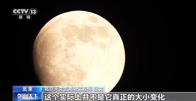 北京天文馆高级工程师 寇文:月亮刚刚升起的时候,在地面景物的衬托下可能会显得更大,到了午夜的时候,月亮升到高空去了,它周围没有对比的物体了,显得月亮又小了一些,这个实际上并不是它真正的大小变化,是一种错觉。